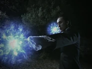 - Light Bullet (光弾, Hikaridama): Although Kodama doesn't speak, he does have a magical voice. By concentrating his sonic energies into his hand, he can create explosive blue orb-like bolts called Light Bullet(s). With the explosive force of a grenade, he can launch them for long range attacks or use it to bolster his hand attacks. The louder his voice, the more powerful the orbs become. He can even create a series of them, line them up, and time release them on his command. He often combines his sonic attacks with his martial arts to give himself a superior field advantage in most confrontations. However, should anyone injure his throat, it would weaken him as he's forced to only use melee combat.