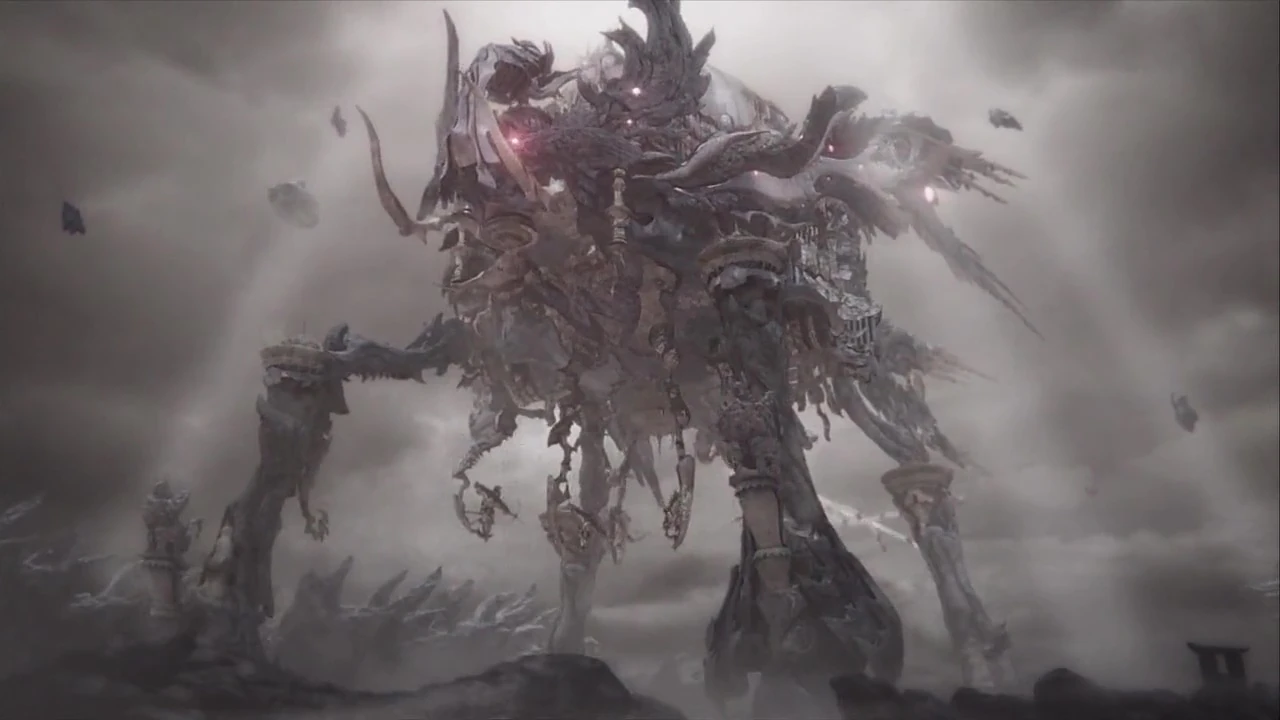 Gyanon was supposedly a dead Horror and Sigma took its corpse to refit it as Idea's power source. Despite being dormant for centuries, the dark malicious emotinos of Sigma helped resurrect Gyanon and the horror devoured Sigma and assimilated Idea. Without any countermeasures, Gyanon became one with Idea. In addition to all its pre-existing capabilities with Idea, Gyanon can command thousands of Horrors under its feet and can create its own gateways. Hundreds of Horrors can jump through the portal and instantly invade the mortal realm to infest. In addition, Gyanon can call forth special light that helps lift itself up the ground and through a barrier to breach into the mortal realm. It was only through the combined powers of nearly all the priests and knights that brought the Horror down and ultimately its destruction.